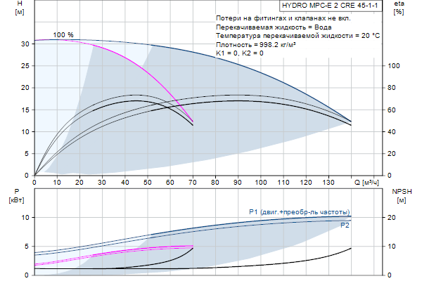 Начиная от 0,37 и до 22 кВт, все станции оснащены насосами CR, CRE, с двигателями со встроенным преобразователем частоты и высокоэффективными постоянными магнитами. Общий КПД этих электродвигателей лучше, чему у двигателей соответствующих стандарту IE4 по IEC60034-31, хотя данный стандарт применяется только для электродвигателей.