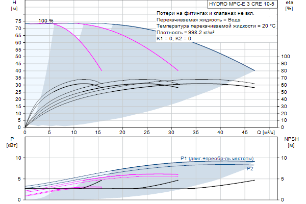 Начиная от 0,37 и до 22 кВт, все станции оснащены насосами CR, CRE, с двигателями со встроенным преобразователем частоты и высокоэффективными постоянными магнитами. Общий КПД этих электродвигателей лучше, чему у двигателей соответствующих стандарту IE4 по IEC60034-31, хотя данный стандарт применяется только для электродвигателей.