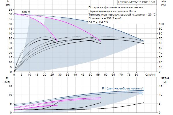 Начиная от 0,37 и до 22 кВт, все станции оснащены насосами CR, CRE, с двигателями со встроенным преобразователем частоты и высокоэффективными постоянными магнитами. Общий КПД этих электродвигателей лучше, чему у двигателей соответствующих стандарту IE4 по IEC60034-31, хотя данный стандарт применяется только для электродвигателей.