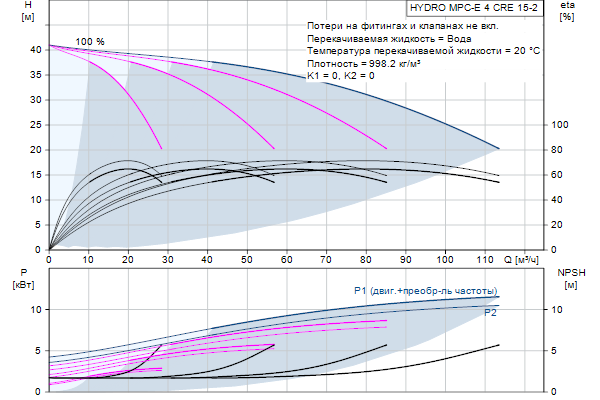 Начиная от 0,37 и до 22 кВт, все станции оснащены насосами CR, CRE, с двигателями со встроенным преобразователем частоты и высокоэффективными постоянными магнитами. Общий КПД этих электродвигателей лучше, чему у двигателей соответствующих стандарту IE4 по IEC60034-31, хотя данный стандарт применяется только для электродвигателей.