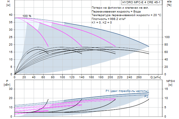 Начиная от 0,37 и до 22 кВт, все станции оснащены насосами CR, CRE, с двигателями со встроенным преобразователем частоты и высокоэффективными постоянными магнитами. Общий КПД этих электродвигателей лучше, чему у двигателей соответствующих стандарту IE4 по IEC60034-31, хотя данный стандарт применяется только для электродвигателей.