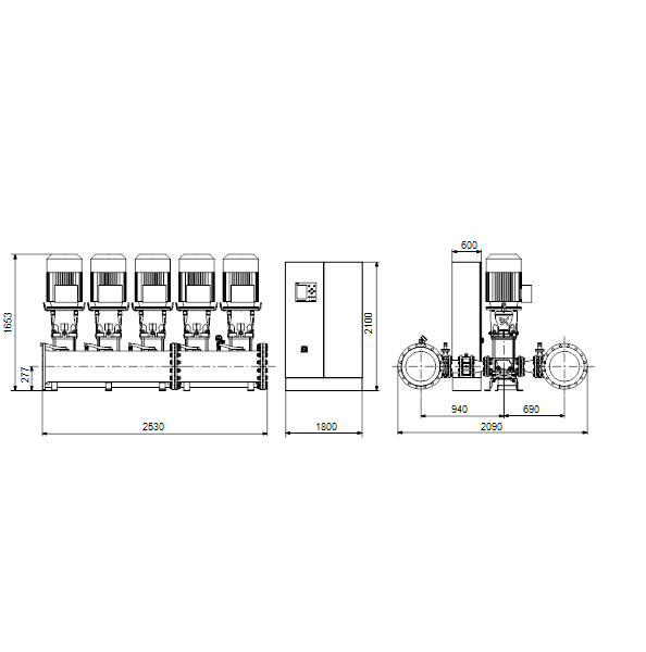 Производительность системы изменяется включением/выключением требуемого количества насосов и параллельным управлением работающими насосами.