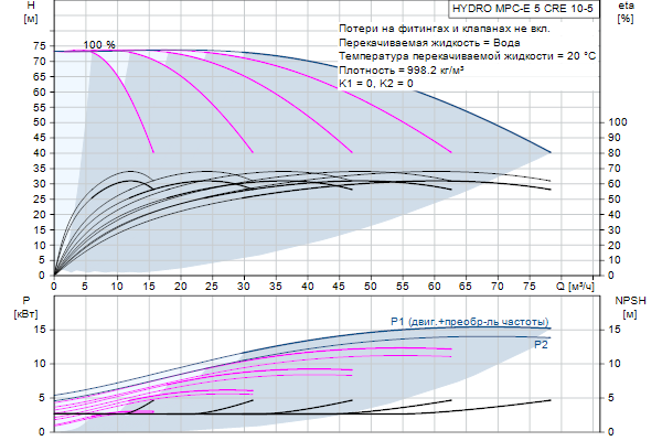 Начиная от 0,37 и до 22 кВт, все станции оснащены насосами CR, CRE, с двигателями со встроенным преобразователем частоты и высокоэффективными постоянными магнитами. Общий КПД этих электродвигателей лучше, чему у двигателей соответствующих стандарту IE4 по IEC60034-31, хотя данный стандарт применяется только для электродвигателей.