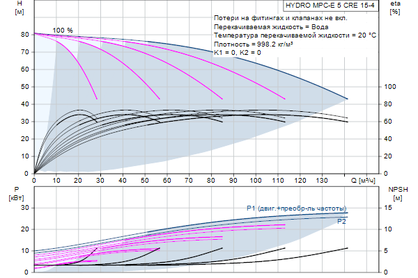 Начиная от 0,37 и до 22 кВт, все станции оснащены насосами CR, CRE, с двигателями со встроенным преобразователем частоты и высокоэффективными постоянными магнитами. Общий КПД этих электродвигателей лучше, чему у двигателей соответствующих стандарту IE4 по IEC60034-31, хотя данный стандарт применяется только для электродвигателей.
