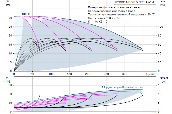 Начиная от 0,37 и до 22 кВт, все станции оснащены насосами CR, CRE, с двигателями со встроенным преобразователем частоты и высокоэффективными постоянными магнитами. Общий КПД этих электродвигателей лучше, чему у двигателей соответствующих стандарту IE4 по IEC60034-31, хотя данный стандарт применяется только для электродвигателей.