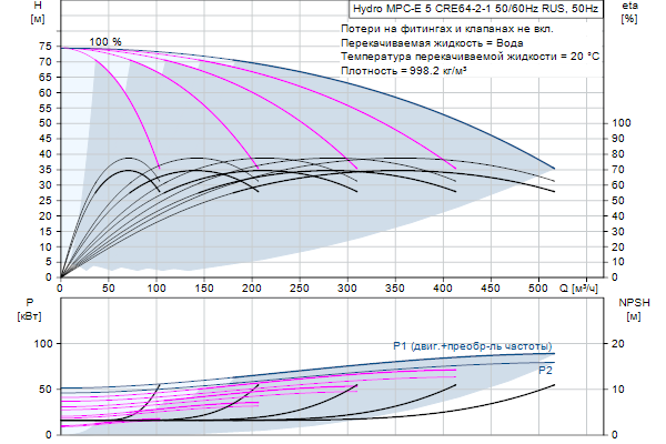 Начиная от 0,37 и до 22 кВт, все станции оснащены насосами CR, CRE, с двигателями со встроенным преобразователем частоты и высокоэффективными постоянными магнитами. Общий КПД этих электродвигателей лучше, чему у двигателей соответствующих стандарту IE4 по IEC60034-31, хотя данный стандарт применяется только для электродвигателей.