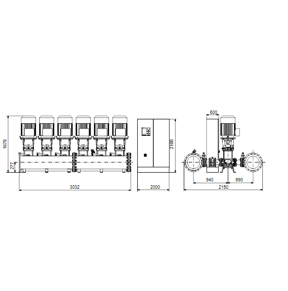 Система повышения давления оборудована насосами CR, подключенными к внешним частотным преобразователям типа CUE Grundfos (по одному для каждого насоса).