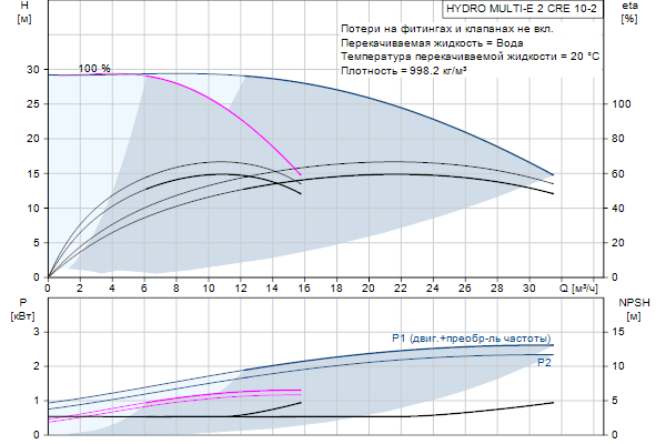 HYDRO MULTI-E 2 CRE 10-2Установки повышения давления Hydro Multi-E предназначены для повышения давления чистой воды в системах водоснабжения, многоквартирных домах, гостиницах, на промышленных предприятиях, в больницах, школах и т.д. Установка повышения давления GRUNDFOS Hydro Multi-E включает в себя от 2 до 4 параллельно подключенных насосов CRE, установленных на общую раму-основание, снабженную всей необходимой арматурой.