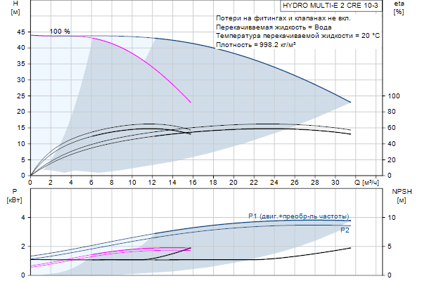 HYDRO MULTI-E 2 CRE 10-3Установки повышения давления Hydro Multi-E предназначены для повышения давления чистой воды в системах водоснабжения, многоквартирных домах, гостиницах, на промышленных предприятиях, в больницах, школах и т.д. Установка повышения давления GRUNDFOS Hydro Multi-E включает в себя от 2 до 4 параллельно подключенных насосов CRE, установленных на общую раму-основание, снабженную всей необходимой арматурой.