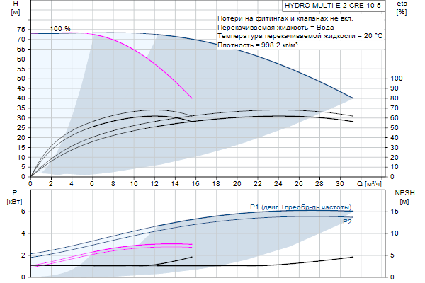 HYDRO MULTI-E 2 CRE 10-5Установки повышения давления Hydro Multi-E предназначены для повышения давления чистой воды в системах водоснабжения, многоквартирных домах, гостиницах, на промышленных предприятиях, в больницах, школах и т.д. Установка повышения давления GRUNDFOS Hydro Multi-E включает в себя от 2 до 4 параллельно подключенных насосов CRE, установленных на общую раму-основание, снабженную всей необходимой арматурой.