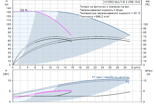 HYDRO MULTI-E 2 CRE 10-9Установки повышения давления Hydro Multi-E предназначены для повышения давления чистой воды в системах водоснабжения, многоквартирных домах, гостиницах, на промышленных предприятиях, в больницах, школах и т.д. Установка повышения давления GRUNDFOS Hydro Multi-E включает в себя от 2 до 4 параллельно подключенных насосов CRE, установленных на общую раму-основание, снабженную всей необходимой арматурой.