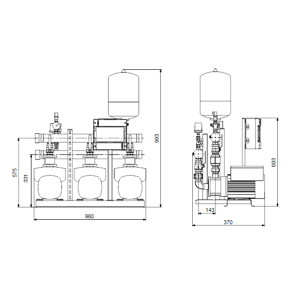 Комплектные высокотехнологичные и энергоэффективные установки повышения давления для перекачивания чистой воды. В состав установки входят 2-3 насоса CME или 2-4 насоса CRE со встроенными частотными преобразователями и необходимая обвязка