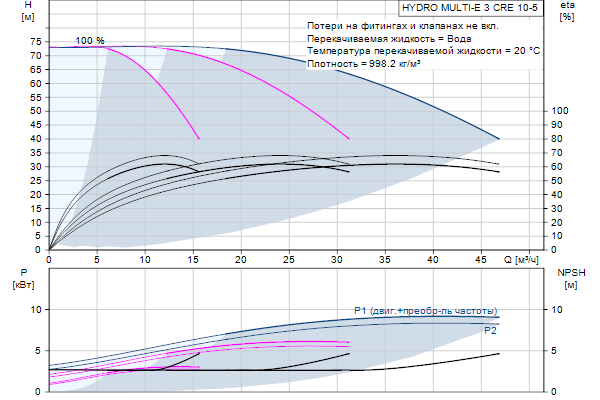 HYDRO MULTI-E 3 CRE 10-5Установки повышения давления Hydro Multi-E предназначены для повышения давления чистой воды в системах водоснабжения, многоквартирных домах, гостиницах, на промышленных предприятиях, в больницах, школах и т.д. Установка повышения давления GRUNDFOS Hydro Multi-E включает в себя от 2 до 4 параллельно подключенных насосов CRE, установленных на общую раму-основание, снабженную всей необходимой арматурой.