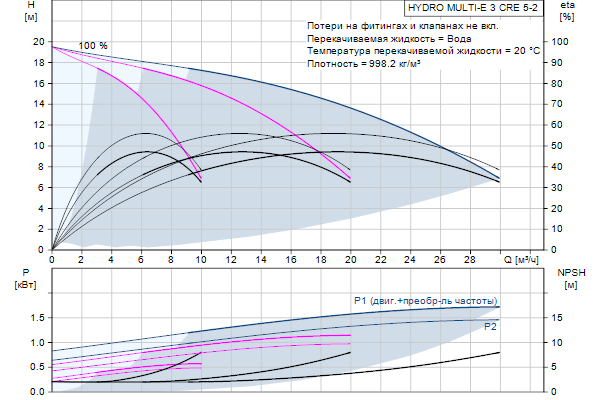 HYDRO MULTI-E 3 CRE 5-2Установки повышения давления Hydro Multi-E предназначены для повышения давления чистой воды в системах водоснабжения, многоквартирных домах, гостиницах, на промышленных предприятиях, в больницах, школах и т.д. Установка повышения давления GRUNDFOS Hydro Multi-E включает в себя от 2 до 4 параллельно подключенных насосов CRE, установленных на общую раму-основание, снабженную всей необходимой арматурой.