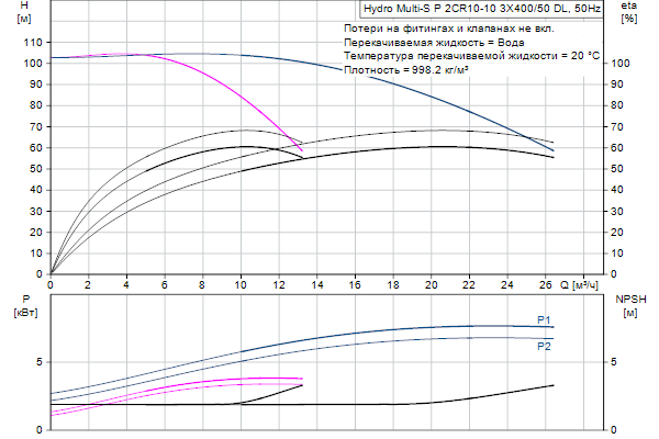 Наименование насоса: Hydro Multi-S 2 с насосами CR10-10Описание продукта Установки повышения давления GRUNDFOS Hydro Multi-S предназначены для перекачивания и повышения давления чистой воды в многоквартирных домах, гостиницах, школах и т.д.