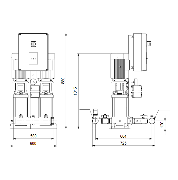Комплектные установки повышения давления для перекачивания чистой воды. В состав установки входят 2-3 насоса CM или CR, шкаф управления и необходимая обвязка