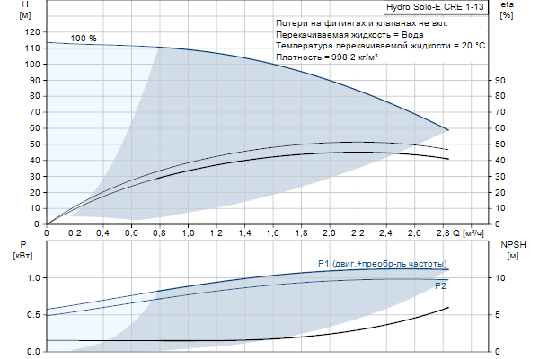 Hydro Solo-E CRE 1-13 HQQEУстановка повышения давления Grundfos Hydro Solo-E с одним насосом представляет собой единый агрегат, включающий в себя один E-насос (CRE), снабженный запорным клапаном, обратным клапаном, напорным патрубком, датчиком давления, манометром и мембранным гидробаком. Установка повышения давления готова к эксплуатации сразу после доставки.