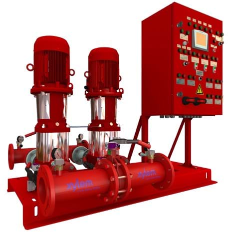 GFF – комплектная автоматизированная установка водяного пожаротушения на базе насосов e-SV и e-NSC. Установка универсальна и может работать как в дренчерной, так и спринклерной системе пожаротушения. В спринклерных системах рекомендуется использовать установки с жокей-насосом, модификация GFF21. В этом случае жокей-насос устанавливается на единой раме с основными насосами.