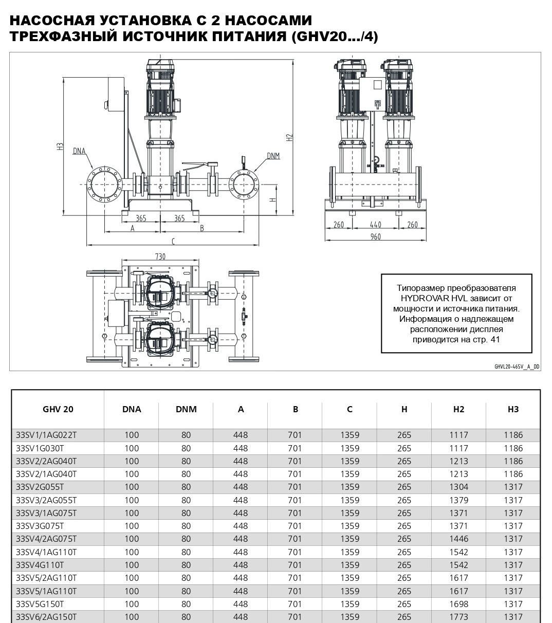 Серия GHV оснащена вертикальными 2-4 многоступенчатыми насосами e-SV, каждый из которых имеет привод с переменной частотой вращения Hydrovar HVL, датчики давления и панель управления, смонтированные на раме для удобства установки. Серию GHV легко программировать, она спроектирована для обеспечения максимальной энергоэффективности и может осуществлять коммуникацию с системой BMS через Modbus или BACnet.