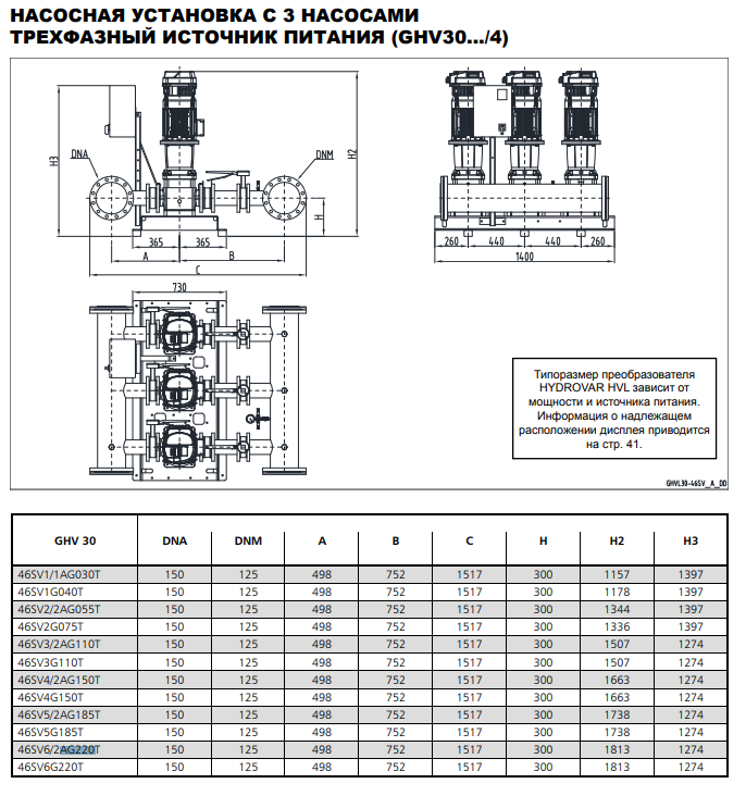 Серия GHV оснащена вертикальными 2-4 многоступенчатыми насосами e-SV, каждый из которых имеет привод с переменной частотой вращения Hydrovar HVL, датчики давления и панель управления, смонтированные на раме для удобства установки. Серию GHV легко программировать, она спроектирована для обеспечения максимальной энергоэффективности и может осуществлять коммуникацию с системой BMS через Modbus или BACnet.