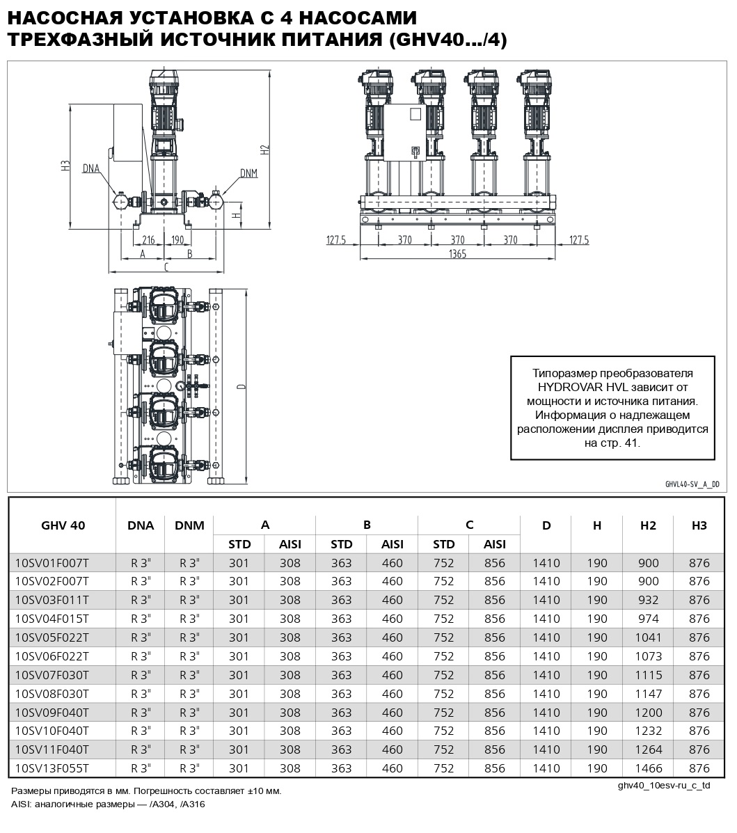 Серия GHV оснащена вертикальными 2-4 многоступенчатыми насосами e-SV, каждый из которых имеет привод с переменной частотой вращения Hydrovar HVL, датчики давления и панель управления, смонтированные на раме для удобства установки. Серию GHV легко программировать, она спроектирована для обеспечения максимальной энергоэффективности и может осуществлять коммуникацию с системой BMS через Modbus или BACnet.