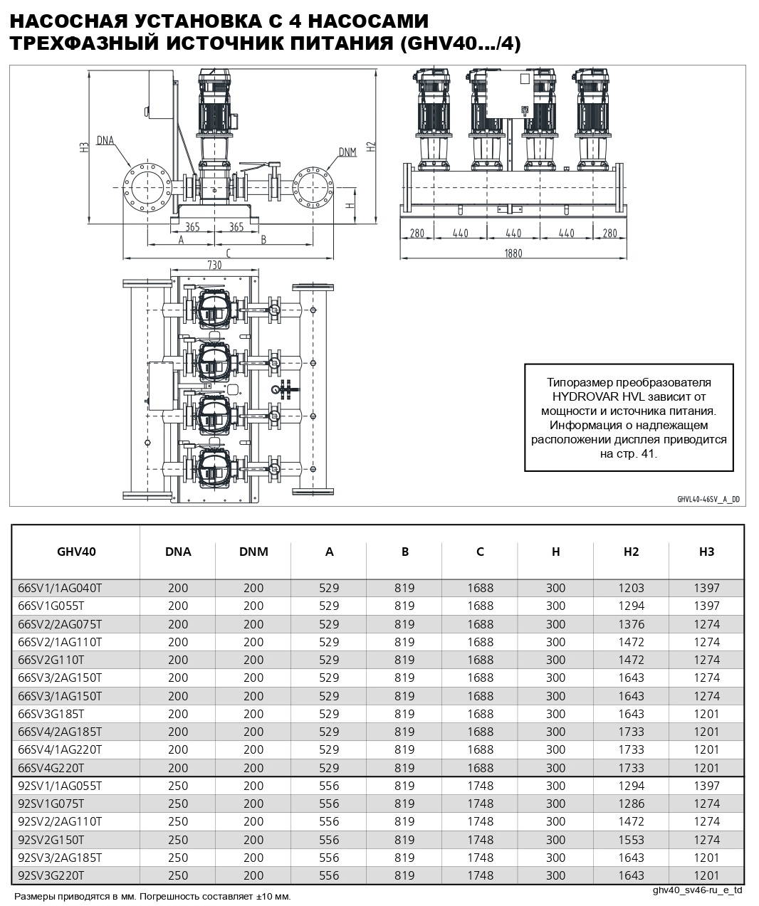 Серия GHV оснащена вертикальными 2-4 многоступенчатыми насосами e-SV, каждый из которых имеет привод с переменной частотой вращения Hydrovar HVL, датчики давления и панель управления, смонтированные на раме для удобства установки. Серию GHV легко программировать, она спроектирована для обеспечения максимальной энергоэффективности и может осуществлять коммуникацию с системой BMS через Modbus или BACnet.