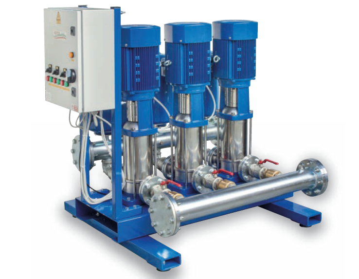 Напорная группа с 3 многоступенчатыми вертикальными насосами. Применяется для водоснабжения из колодцев и для повышения давления от водопровода.