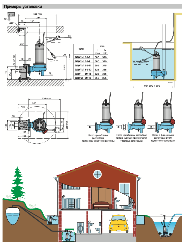 Для бытовых и промышленных стоков, не агрессивных к конструкционным материалам насоса, а также для грязных жидкостей, в том числе с твердыми инородными телами диаметром до 50 мм в жидкостях, совместимых с материалами насоса. Дренаж затопленных помещений или ванн.