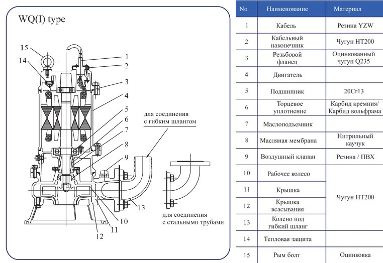 Погружной канализационный насос CNP серии WQ применяется для отвода сточных вод. Особенности конструкции насоса значительно повышает его надежность. Двухканальное рабочее колесо обеспечивает высокую устойчивость против засорений, высокий гидравлический КПД при больших подачах, стабильную работу без турбулентных завихрений. Данный насос легок при монтаже и обслуживании. В комплектации с коленом под фланец.