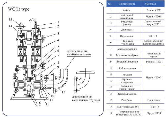 -перекачиваемая жидкость: дождевая вода, сточная вода с твердыми и волокнистыми частицами.