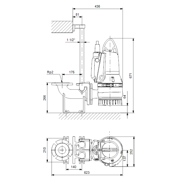 Выход насоса: Насос с напорным патрубком DN 65 готов как к свободной, так и к установке с помощью системы с автоматической трубной муфтой.