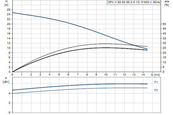 Насос выполнен из чугуна и оснащен боковым напорным патрубком и встроенным трехфазным электродвигателем погружного типа в полностью закрытом корпусе, класс изоляции F (155 °C).