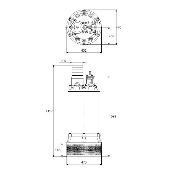 Насос выполнен из чугуна, имеет вертикальный напорный канал и оснащен встроенным погружным трехфазным закрытым электродвигателем, имеющим класс изоляции F (155°C).
