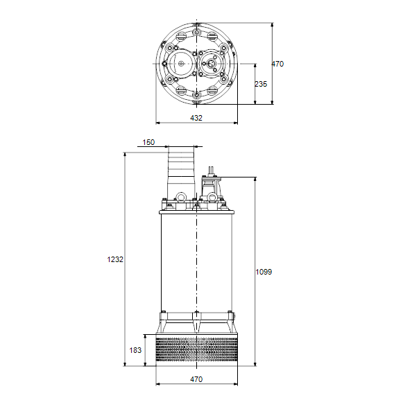 Насос выполнен из чугуна, имеет вертикальный напорный канал и оснащен встроенным погружным трехфазным закрытым электродвигателем, имеющим класс изоляции F (155°C).
