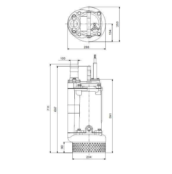 Насос выполнен из чугуна, имеет вертикальный напорный канал и оснащен встроенным погружным трехфазным закрытым электродвигателем, имеющим класс изоляции F (155°C).