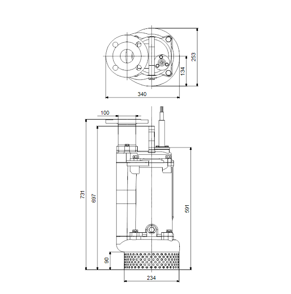 Насос выполнен из чугуна, имеет вертикальный напорный канал и оснащен встроенным погружным трехфазным закрытым электродвигателем, имеющим класс изоляции F (155°C).