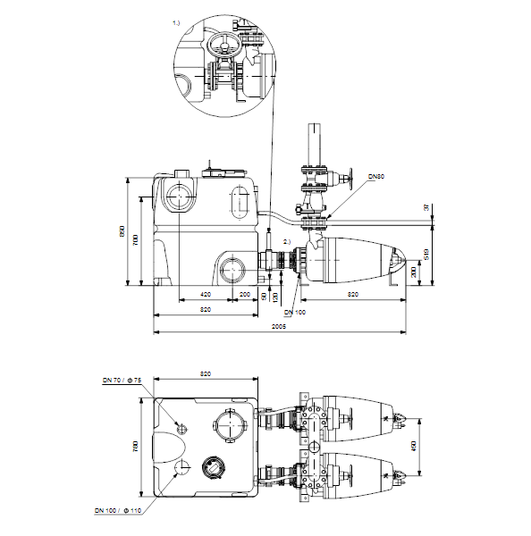 MD1.80.80.40.4.51D/450.SEКомпактная канализационная насосная станция для сточных вод состоит из одного или двух баков объемом 450 л, двух горизонтальных погружныех насосов серии SE для сточных вод, вкл.контроллер, аналоговый датчик уровня и возможность подключения принадлежностей.
