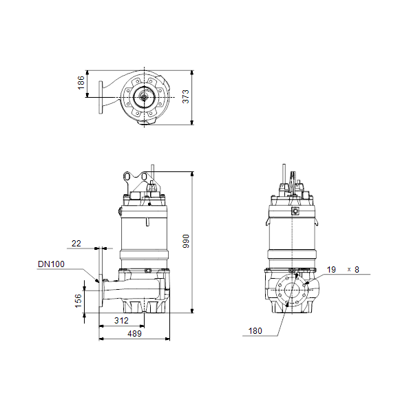 Несамовсасывающий одноступенчатый центробежный насос, предназначенный для перекачивания сточных вод, технологических вод и неочищенных сточных вод, не пропущенных через решетку.