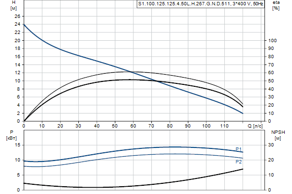Насос предназначен для периодической и непрерывной эксплуатации. Охлаждающий кожух обеспечивает возможность работы насоса, установленного в погруженном или «сухом» положении, без охлаждения электродвигателя. Одноканальное рабочее колесо пропускает твердые частицы размером до 100 мм .