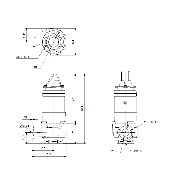 Несамовсасывающий одноступенчатый центробежный насос, предназначенный для перекачивания сточных вод, технологических вод и неочищенных сточных вод, не пропущенных через решетку.