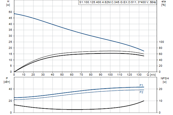 Насос предназначен для периодической и непрерывной эксплуатации. Охлаждающий кожух обеспечивает возможность работы насоса, установленного в погруженном или «сухом» положении, без охлаждения электродвигателя. Одноканальное рабочее колесо пропускает твердые частицы размером до 100 мм .