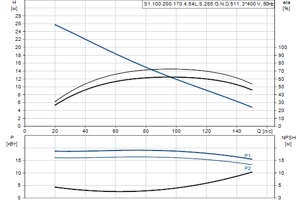 Насос предназначен для периодической и непрерывной эксплуатации в погруженном положении. Одноканальное рабочее колесо пропускает твердые частицы размером до 100 мм .