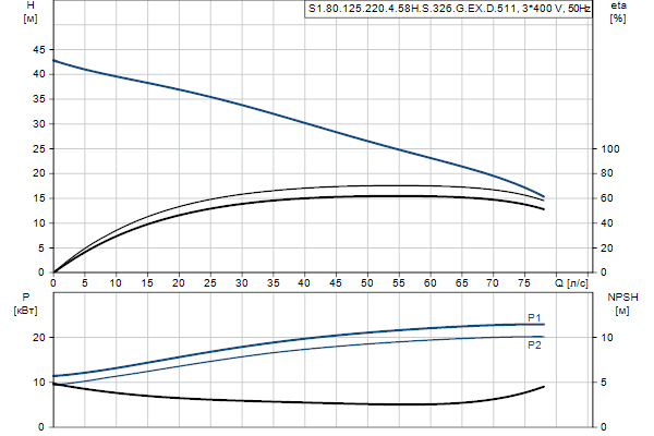 Насос предназначен для периодической и непрерывной эксплуатации в погруженном положении. Одноканальное рабочее колесо пропускает твердые частицы размером до 80 мм .