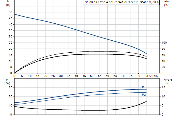 Насос предназначен для периодической и непрерывной эксплуатации в погруженном положении. Одноканальное рабочее колесо пропускает твердые частицы размером до 80 мм .