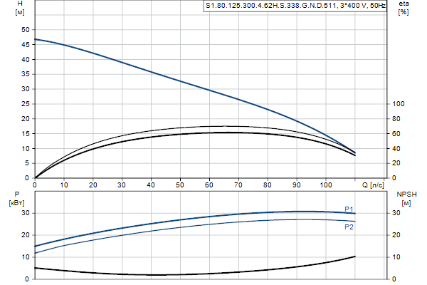 Насос предназначен для периодической и непрерывной эксплуатации в погруженном положении. Одноканальное рабочее колесо пропускает твердые частицы размером до 80 мм .