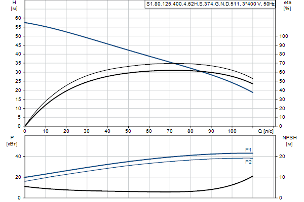 Насос предназначен для периодической и непрерывной эксплуатации в погруженном положении. Одноканальное рабочее колесо пропускает твердые частицы размером до 80 мм .