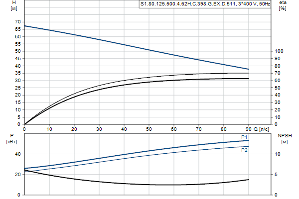 Насос предназначен для периодической и непрерывной эксплуатации. Охлаждающий кожух обеспечивает возможность работы насоса, установленного в погруженном или «сухом» положении, без охлаждения электродвигателя. Одноканальное рабочее колесо пропускает твердые частицы размером до 80 мм .
