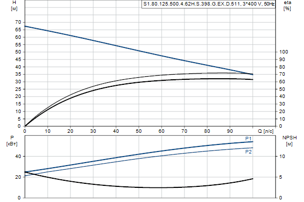 Насос предназначен для периодической и непрерывной эксплуатации в погруженном положении. Одноканальное рабочее колесо пропускает твердые частицы размером до 80 мм .