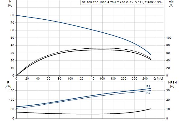 Насос предназначен для периодической и непрерывной эксплуатации. Охлаждающий кожух обеспечивает возможность работы насоса, установленного в погруженном или «сухом» положении, без охлаждения электродвигателя. Двухканальное рабочее колесо пропускает твердые частицы размером до 100 мм .