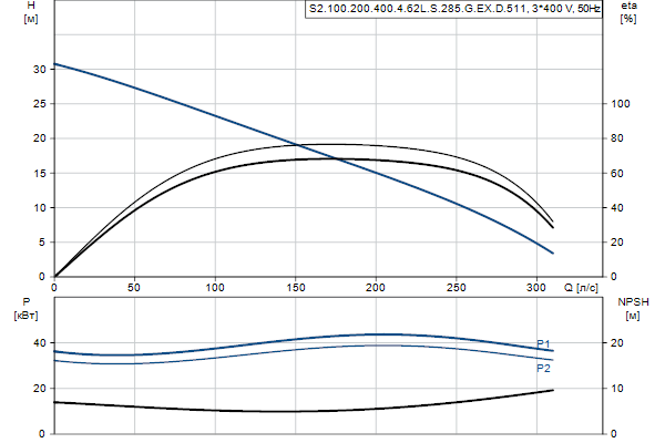 S2.100.200.400.4.62L.S.285.G.EX.D.511Несамовсасывающий одноступенчатый центробежный насос, предназначенный для перекачивания сточных вод, технологических вод и неочищенных сточных вод, не пропущенных через решетку. Насос предназначен для периодической и непрерывной эксплуатации в погруженном положении. Двухканальное рабочее колесо пропускает твердые частицы размером до 100 мм . Система регулирования зазора рабочего колеса SmartTrim позволяет обеспечивать максимальную производительность в течение срока службы насоса. Для облегчения транспортировки, а также монтажа на месте насос оснащен прочным подъемным кронштейном. При монтаже на автоматической трубной муфте система уплотнения Grundfos SmartSeal обеспечивает герметичное соединение. Соединения трубопроводов обеспечиваются с использованием фланца DIN . Насос имеет взрывобезопасное исполнение.